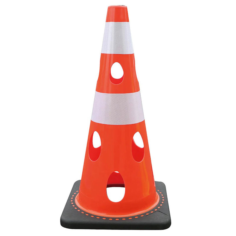 穴あきソフトコーン・ホワイト/白高輝度反射(PVC/ゴム・φ40上部凹凸加工/高さ700mm) 穴あきコーン 風抵抗軽減コーン 倒れにくコーン ソフトコーン