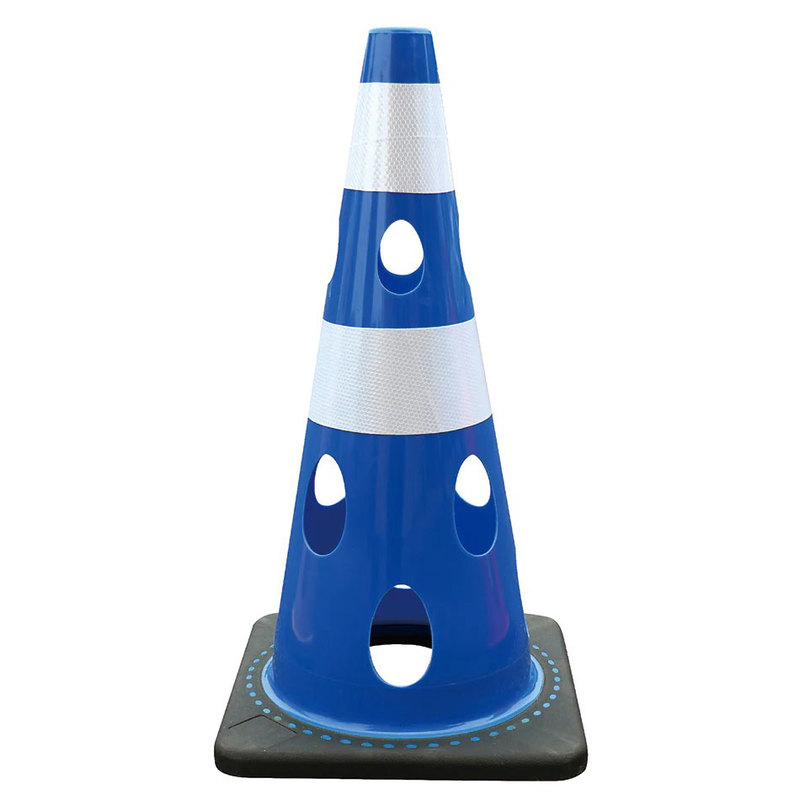 穴あきソフトコーン・ブルー/白高輝度反射(PVC/ゴム・φ40上部凹凸加工/高さ700mm) 穴あきコーン 風抵抗軽減コーン 倒れにくコーン ソフトコーン