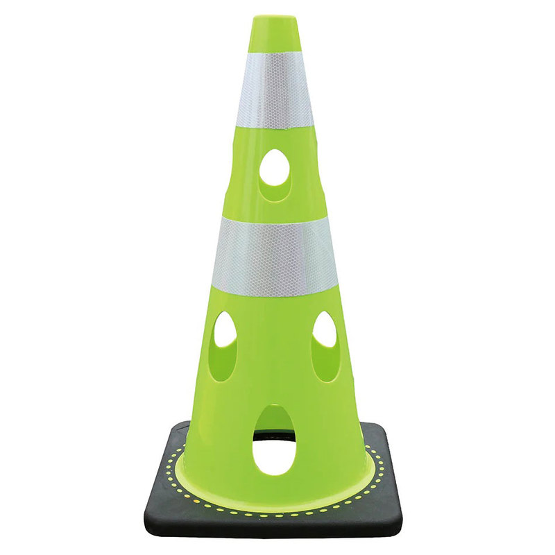 穴あきソフトコーン・グリーンイエロー/白高輝度反射(PVC/ゴム・φ40上部凹凸加工/高さ700mm) 穴あきコーン 風抵抗軽減コーン 倒れにくコーン ソフトコーン