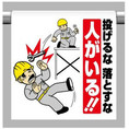 ワンタッチ取付標識「投げるな落とすな人がいる!!」(イラストタイプ)