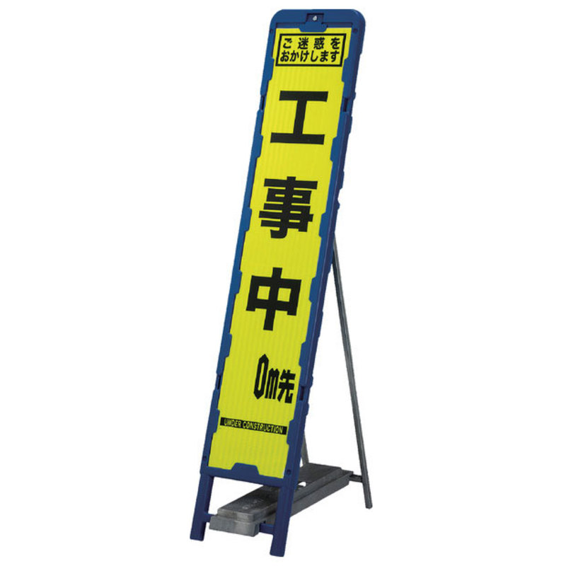 差込式樹脂製スリムイエロー高輝度看板・50m先工事中(275×1400) 工事看板 作業看板 スリム工事看板 スリム作業看板 樹脂製工事看板 樹脂製作業看板