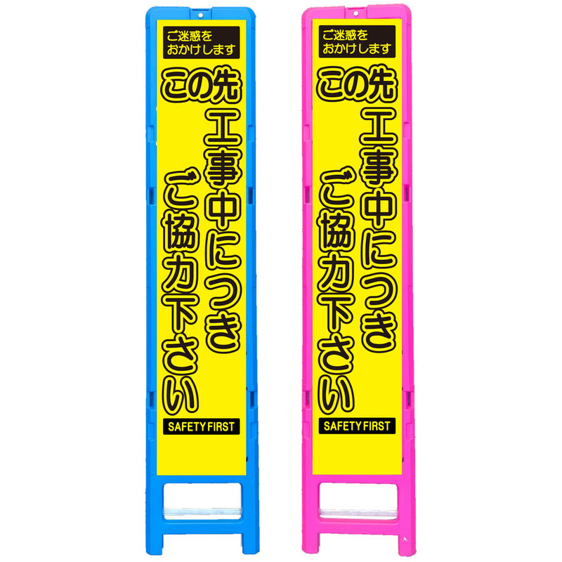 差込式樹脂製スリムイエロー高輝度看板・この先工事中につきご協力をお願いいたします(275×1400) 工事看板 作業看板 スリム工事看板 スリム作業看板 樹脂製工事看板 樹脂製作業看板