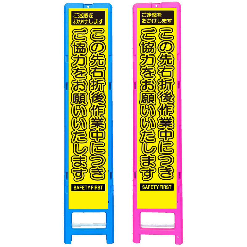 差込式樹脂製スリムイエロー高輝度看板・この先右折後作業中につきご協力をお願いいたします(275×1400) 工事看板 作業看板 スリム工事看板 スリム作業看板 樹脂製工事看板 樹脂製作業看板