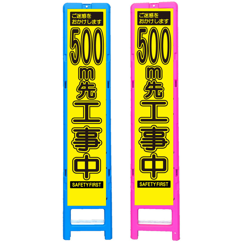 差込式樹脂製スリムイエロー高輝度看板・500m先工事中(275×1400) 工事看板 作業看板 スリム工事看板 スリム作業看板 樹脂製工事看板 樹脂製作業看板