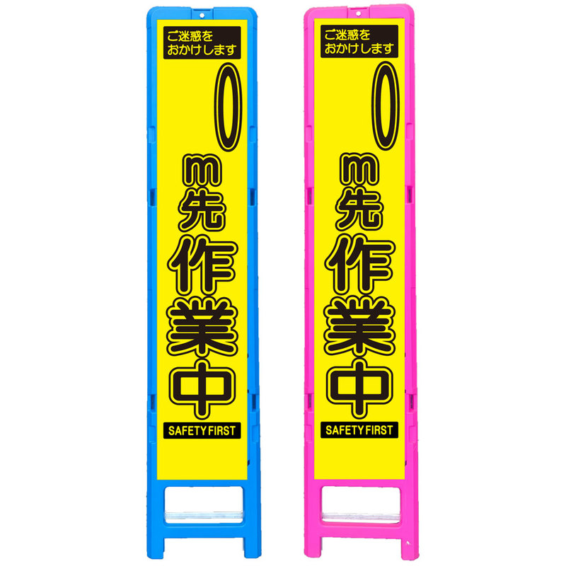 差込式樹脂製スリムイエロー高輝度看板・○○m先工事中(275×1400) 工事看板 作業看板 スリム工事看板 スリム作業看板 樹脂製工事看板 樹脂製作業看板
