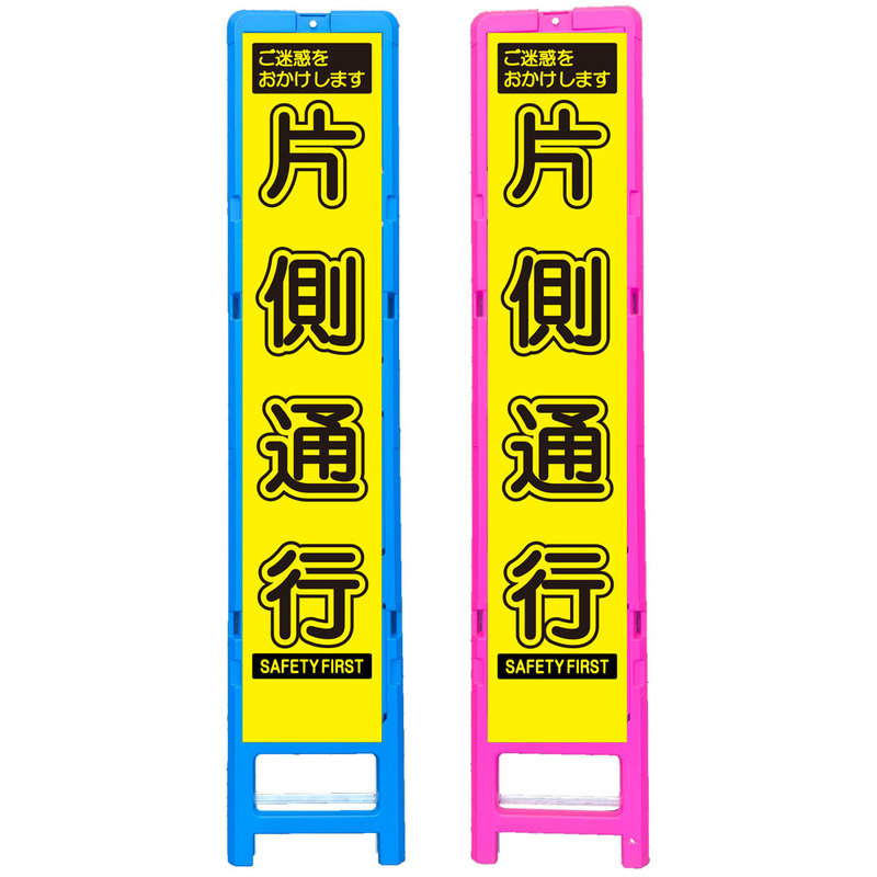 差込式樹脂製スリムイエロー高輝度看板・工事中につき片側通行ご協力下さい(275×1400) 工事看板 作業看板 スリム工事看板 スリム作業看板 樹脂製工事看板 樹脂製作業看板