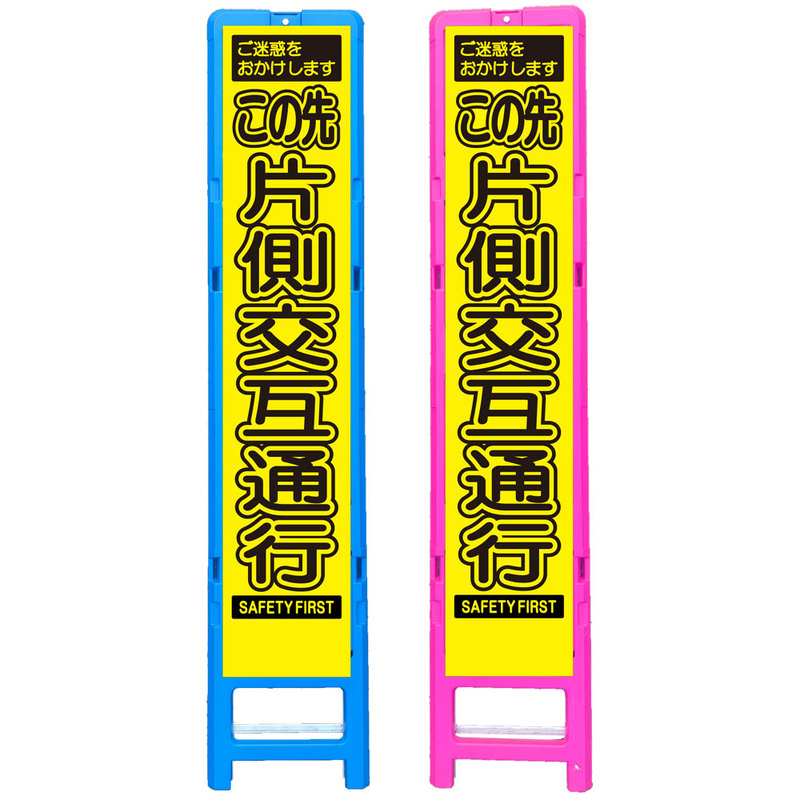 差込式樹脂製スリムイエロー高輝度看板・この先片側交互通行(275×1400) 工事看板 作業看板 スリム工事看板 スリム作業看板 樹脂製工事看板 樹脂製作業看板