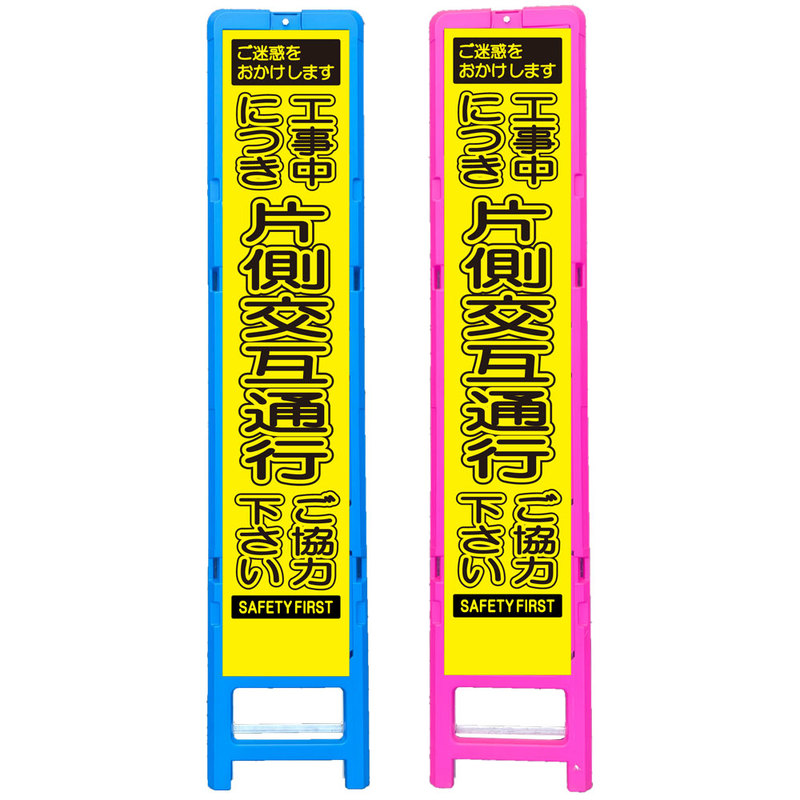 差込式樹脂製スリムイエロー高輝度看板・工事中につき片側交互通行ご協力下さい(275×1400) 工事看板 作業看板 スリム工事看板 スリム作業看板 樹脂製工事看板 樹脂製作業看板