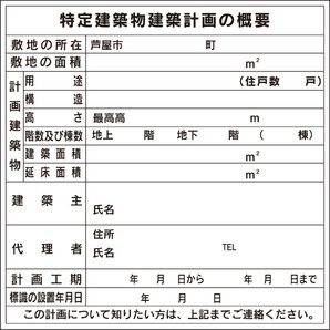 芦屋市特定建築物計画概要標識 900mmx900mm 1mm