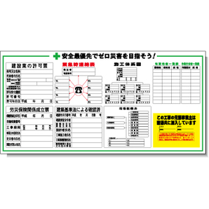 建設一体型標識 建築基準法、現場組織図 JX-12 900x1800